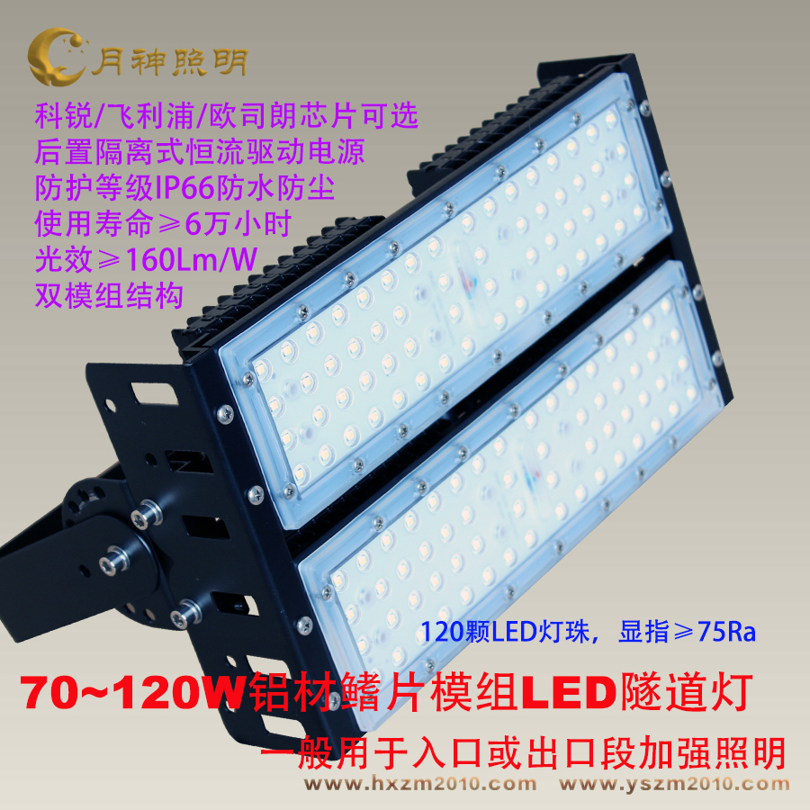 (4)光效高:月神照明LED隧道燈采用進口超高光效LED芯片,整燈光效一般都在160Lm/W以上,只有超高的光效才能確保隧道路面的照度。